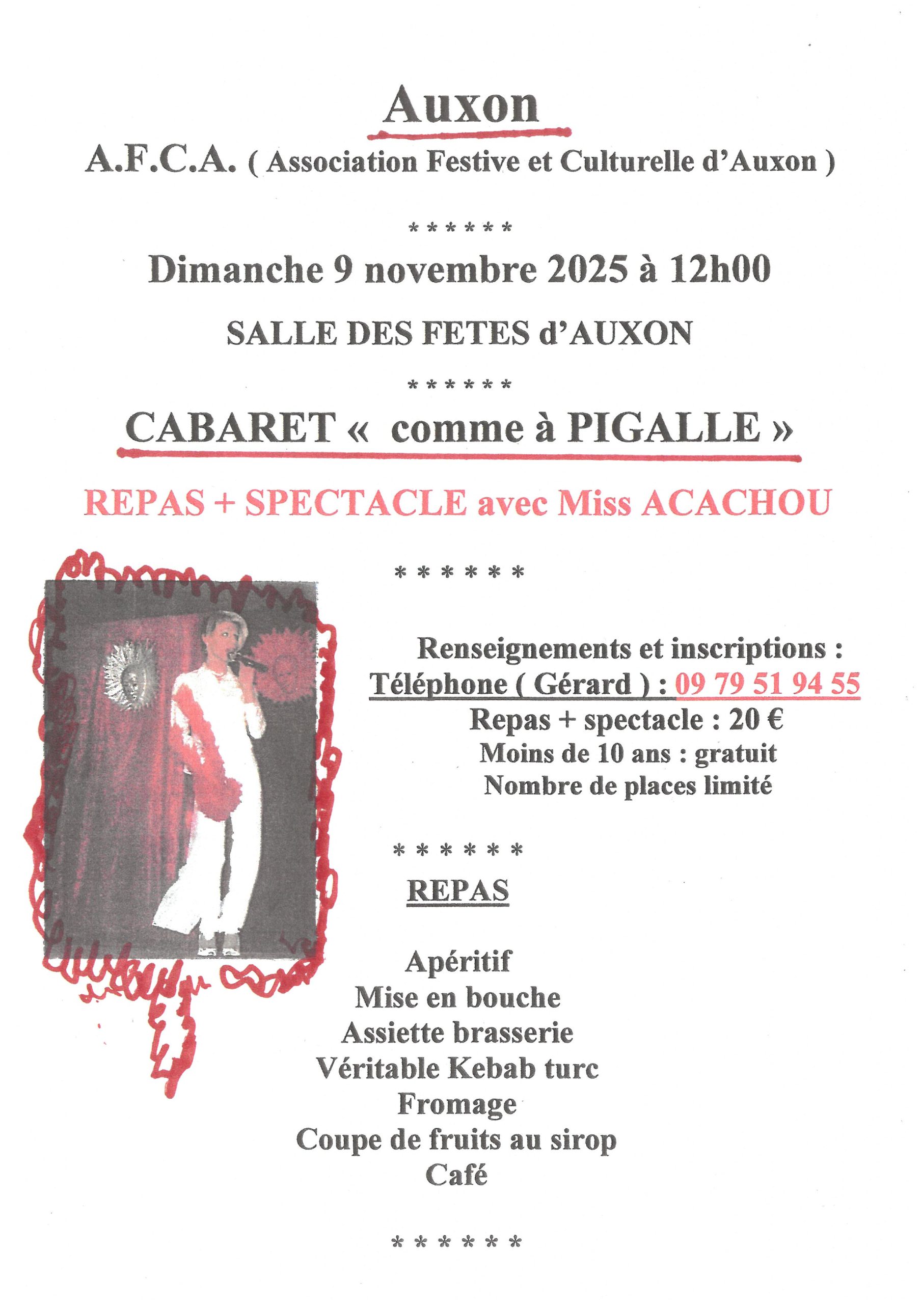 Promouvoir dans la commune d’AUXON des manifestations culturelles et des manifestations diverses.